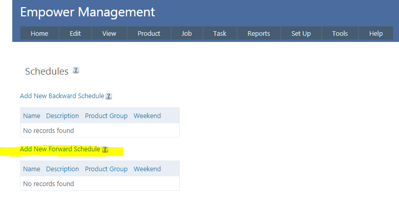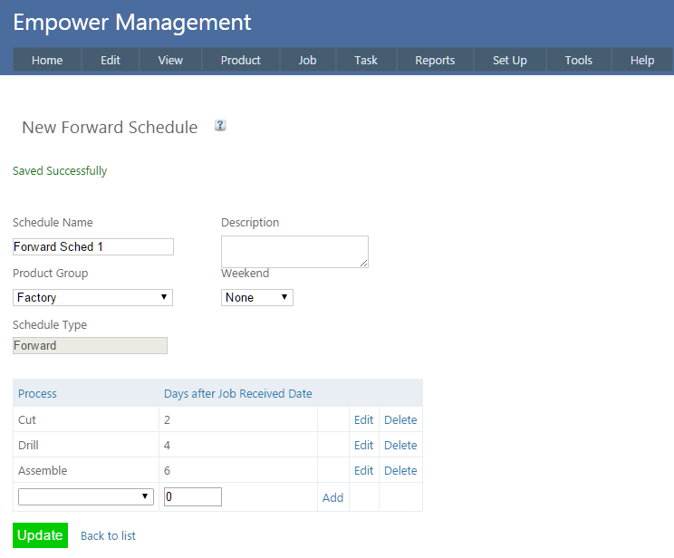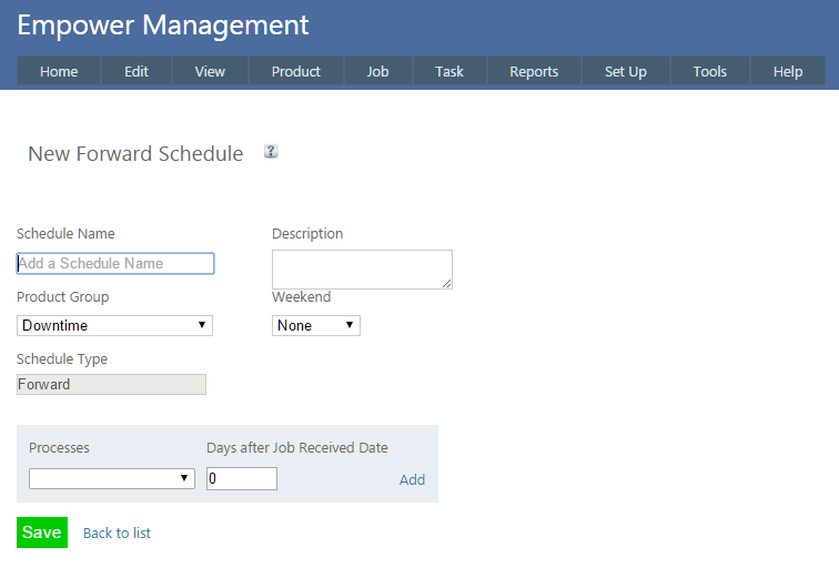 Home > Factory Productivity and Scheduling > Scheduling > Forward Scheduling > Add New Forward Schedule