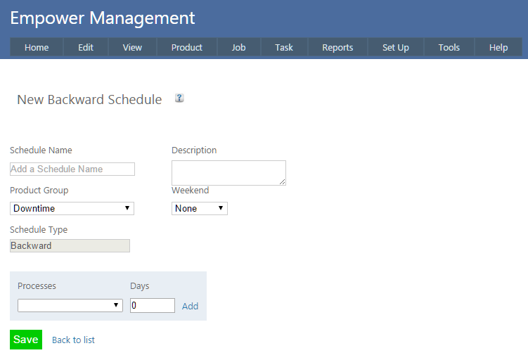 Home > Factory Productivity and Scheduling > Scheduling > Backwards Scheduling > Add New Backward Schedule