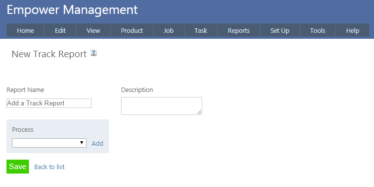 Home > Factory Productivity and Scheduling > Reports > Track Reports > Add New Track Report
