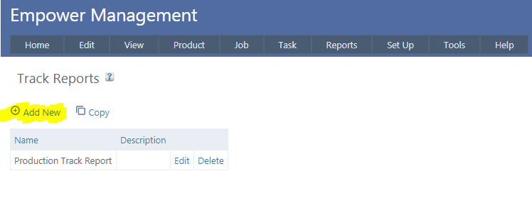 Click on Add New, and type in a name for the Track Report that you are about to Create.