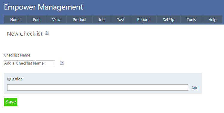 Home > Factory Productivity and Scheduling > Advanced Topics > Advanced Employee Topics > Checklists > Adding a Checklist