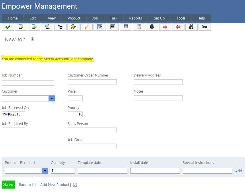 Empower can automatically add a Job to MYOB AccountRight by creating a draft invoice. This is created as soon as a Job is created.