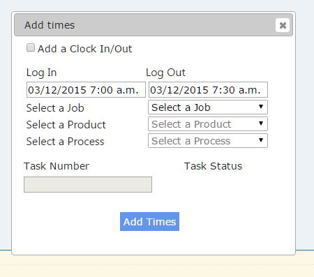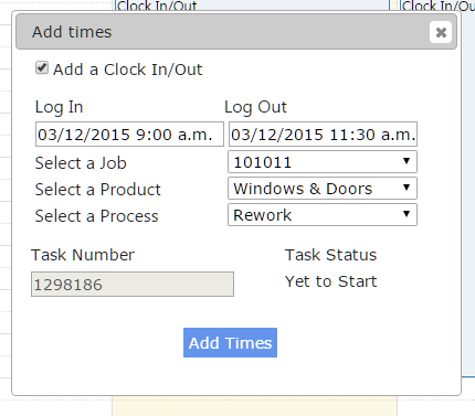 Home > Factory Productivity and Scheduling > Advanced Topics > Advanced Employee Topics > Editing Employees Times > Edit Employee Log In and Log Outs > Adding a Log In and Log Out