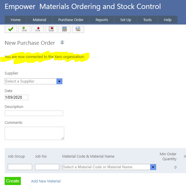 Empower can automatically add a Purchase Order to Xero when creating an Empower Purchase Order.