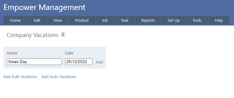 Adding a Single Company Vacation