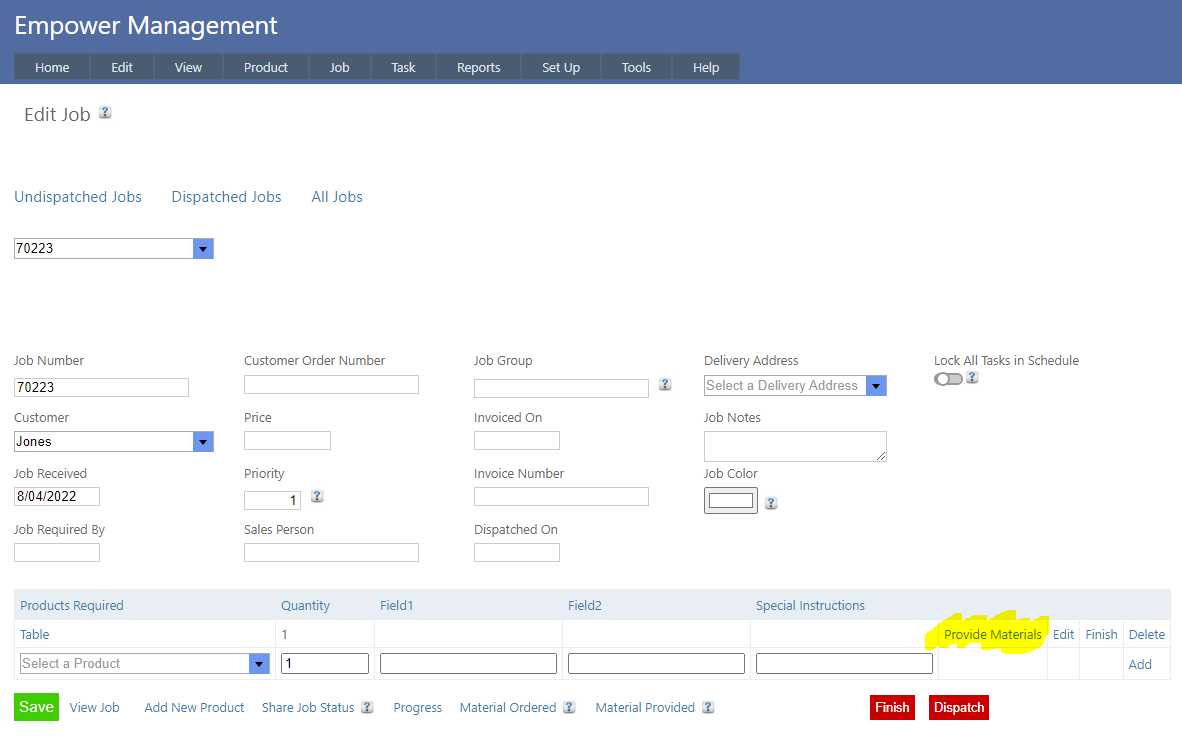 Home > Factory Productivity and Scheduling > Advanced Topics > Advanced Job Topics > Materials > Adding Material to a Job in Management