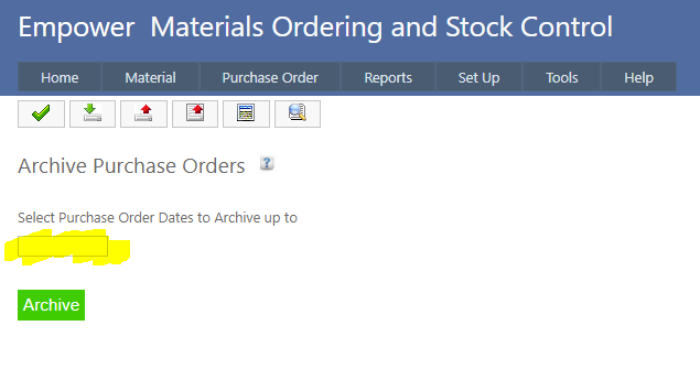 Select a Date to archive Purchase Orders up to.