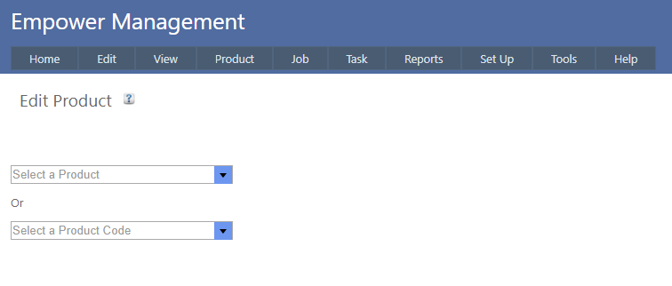 1. From the Main Management Menu select Product > Edit.