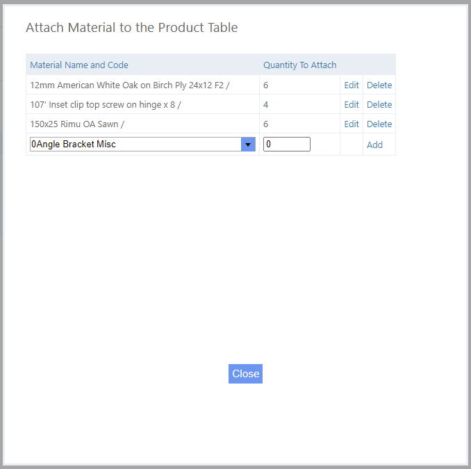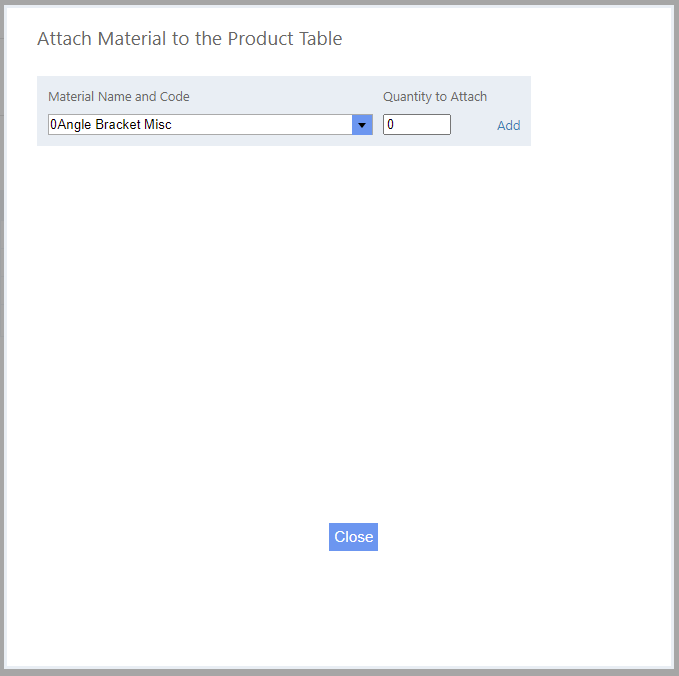 4. From the drop down box now add the Materials and Quantity To Attach for this Product.