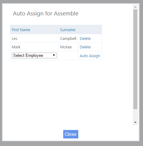 Clicking on the Auto Assign button (highlighted above) will display the Employees or Work Centers that are Auto Assigned for this Process - in this case Les and Mark.