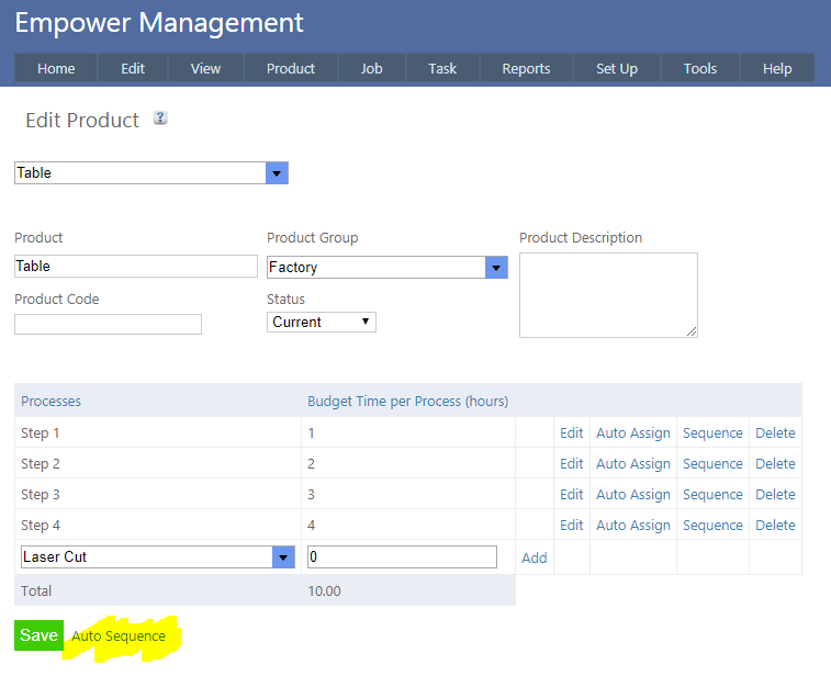 It is possible to quickly and easily sequence Tasks using the Auto Sequence functionality.
