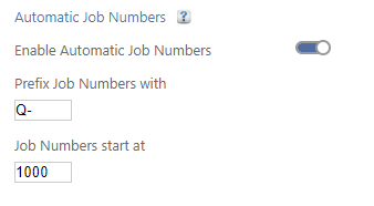 3. Ensure that Enable Automatic Job Numbers is set to on (as displayed above).