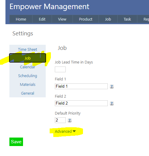 1. From the Main Management Menu, select Tools > Settings - then click on the Job tab (see highlighted below)