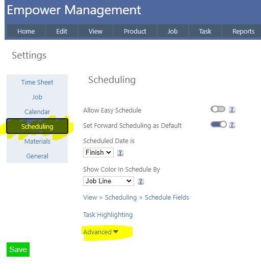 To set this up, from the Main Management Menu, select Tools > Settings and select the Scheduling tab (see highlighted below).
