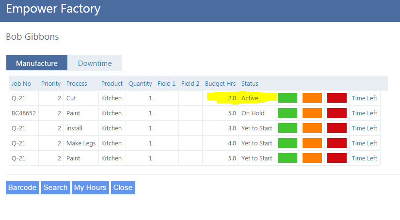 Then scanning the QR code or barcode of a second Task (e.g. in the screen shot above Job No BC48652) will also make that Task Active, and not place the first Active Task (or any other Active Tasks) on Hold.