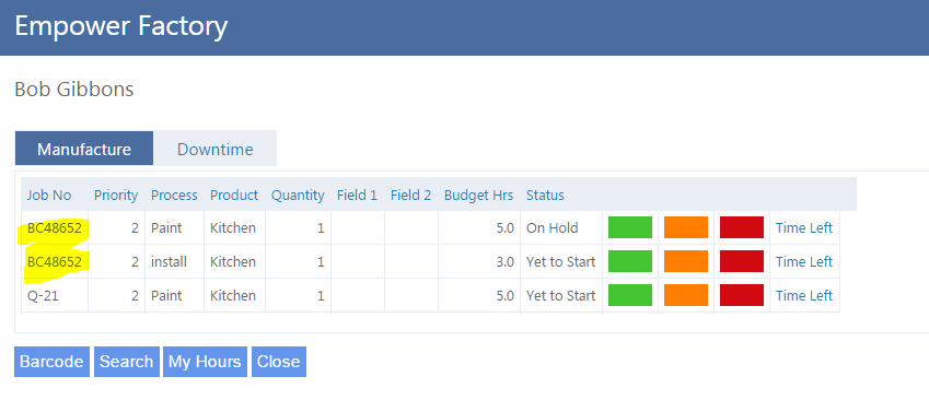 If there is more than one Task with the same Job Number matching the one scanned (see highlighted below)