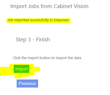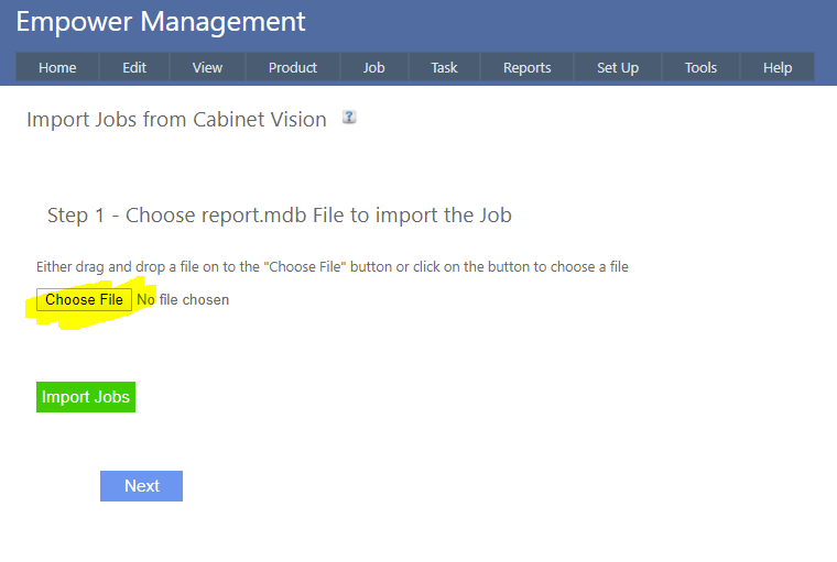 Empower provides a wizard that allows Job data to be imported from Cabinet Vision files. Using the wizard can help in reducing potential data entry errors.