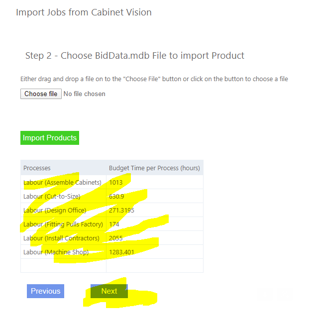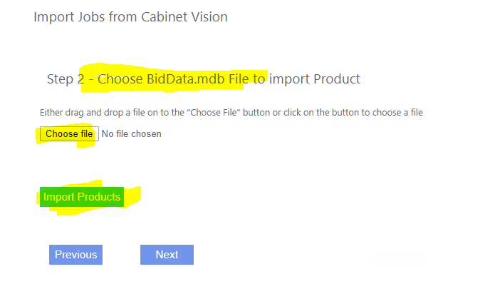 Click on the Choose File Button (highlighted above) and navigate to the file in your Cabinet Vision folder called BidData.mdb.