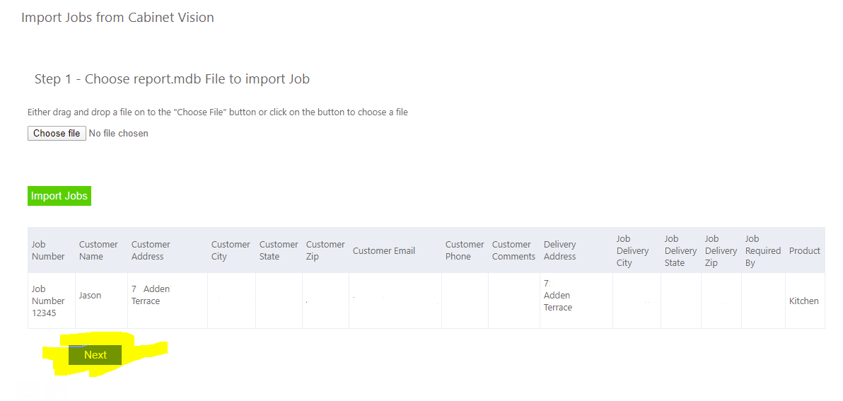 Click on the Choose File Button (highlighted above) and navigate to the file in your Cabinet Vision folder called report.mdb.