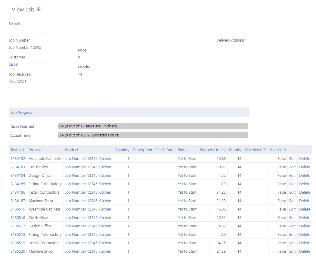 Step 4 Finally you should be able to view the imported Job by selecting (from the Main Management Menu) Job > View Job > Undispatched Jobs and then select the Job number (see an example below).