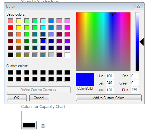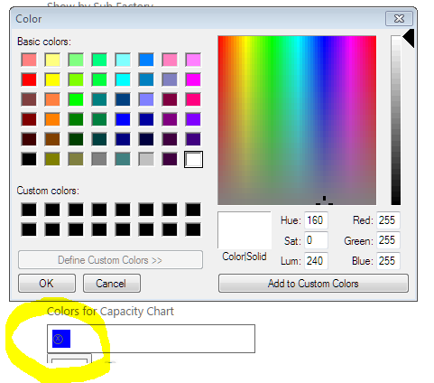 8. Click OK. The color will be added to the Colors for capacity chart (circled below)