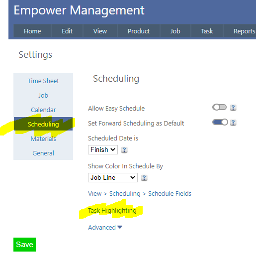 1. From the Main Management Menu, select Tools > Settings and then click on the Scheduling tab (highlighted below)