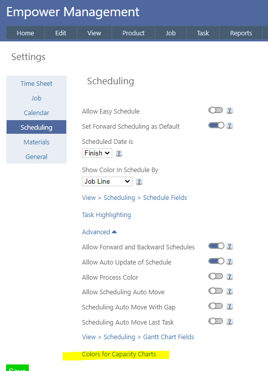 3. Click on Colors for Capacity Charts (see highlighted below)