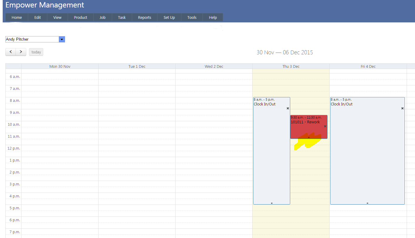 Home > Factory Productivity and Scheduling > Advanced Topics > Advanced Employee Topics > Editing Employees Times > Edit Employee Log In and Log Outs > Changing Log Ins and Log Outs