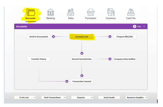 Select Accounts List in Accounts as highlighted below.