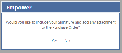 To copy a Purchase Order, from the Main Menu go to Purchase Order > Copy. You should see a page similar to Select a Purchase Order Number from the drop down list (highlighted above). Click on the Create button. You will be asked if you wish to include a signature and any attachments. For more information on signatures and attachments see New Purchase Order. The Purchase Order will have been copied.