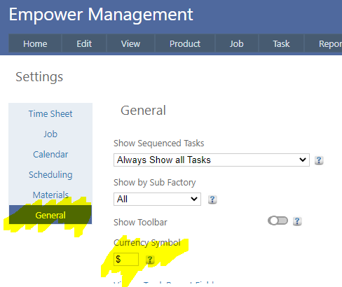 Home > Factory Productivity and Scheduling > Advanced Topics > Settings > Currency Symbol