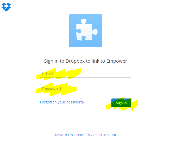 If you already have a Dropbox account you will need to know your Dropbox user name and password - note that this is a different from the Username and Password you use to log in to Empower.