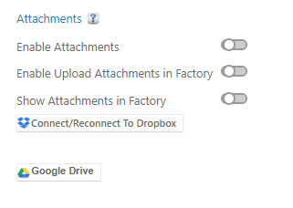 3. Click on Enavle Attchments and Save. Then click Connect/Reconnect To Dropbox.