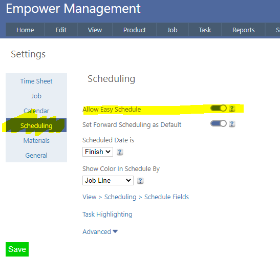 4. Selected Easy Schedules can be edited in the Job > Edit page
