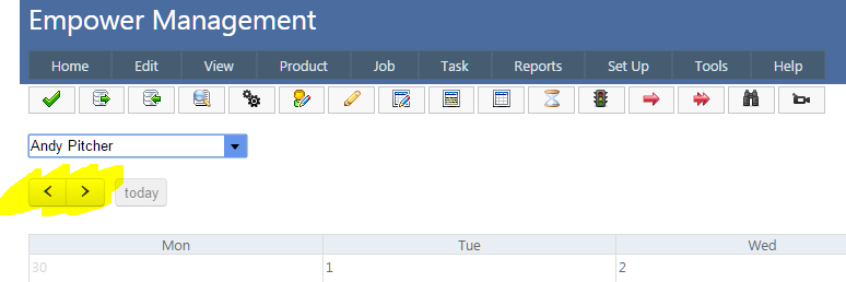 The default view is the current month. Scroll though to prior or future months by clicking on the arrows at the top left hand side of the page (see highlighted below)