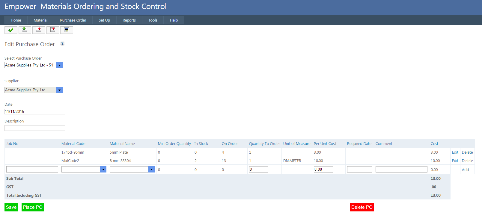 Home > Materials > Purchase Orders > Edit Purchase Order