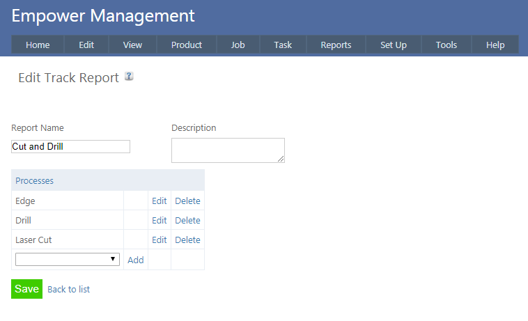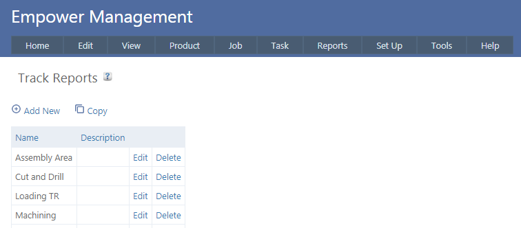 Home > Factory Productivity and Scheduling > Reports > Track Reports > Edit Track Reports