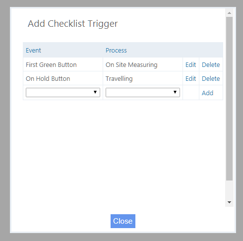 4. Click on Edit or Delete next to the Checklist Trigger you wish to edit or delete.
