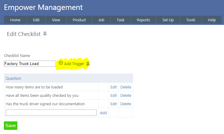 Home > Factory Productivity and Scheduling > Advanced Topics > Advanced Employee Topics > Checklists > Editing a Checklist Trigger