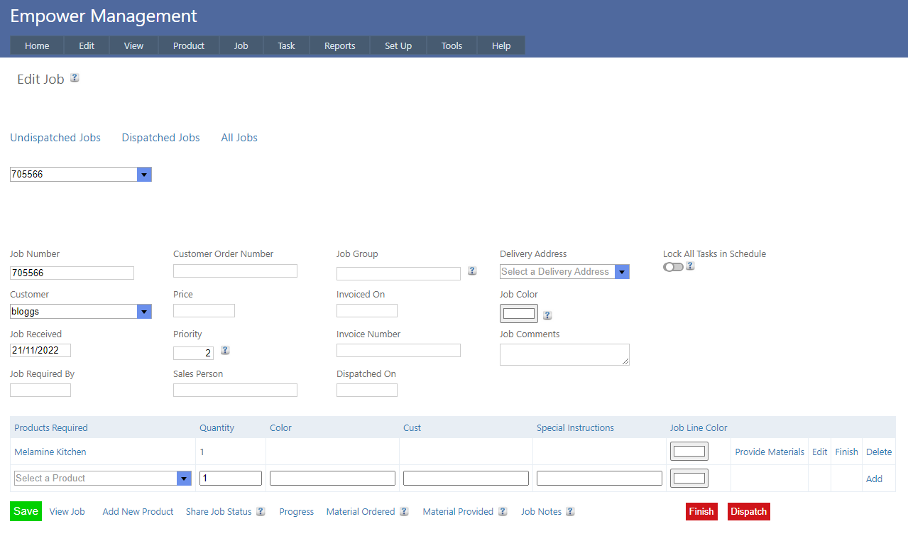 - Finish this Job - for more information on Finishing Jobs, see Finishing Jobs