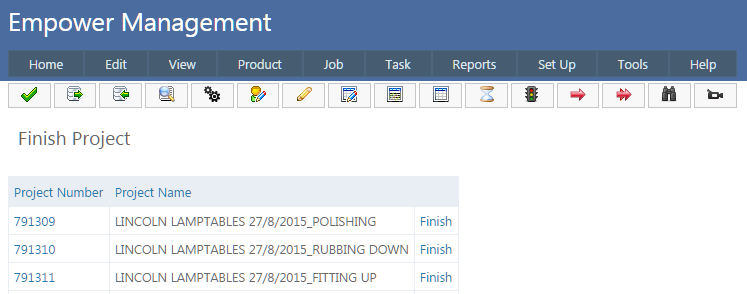 To finish a Project and the Underlying Tasks that make up the Project, from the Main Management Menu go to Tasks > Finish Project.