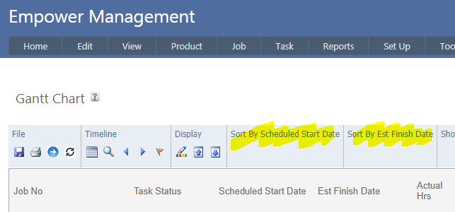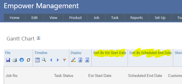 Clicking on Sort By Est Finish Date (highlighted above) will sort the Jobs on the Estimated Finish Date column.