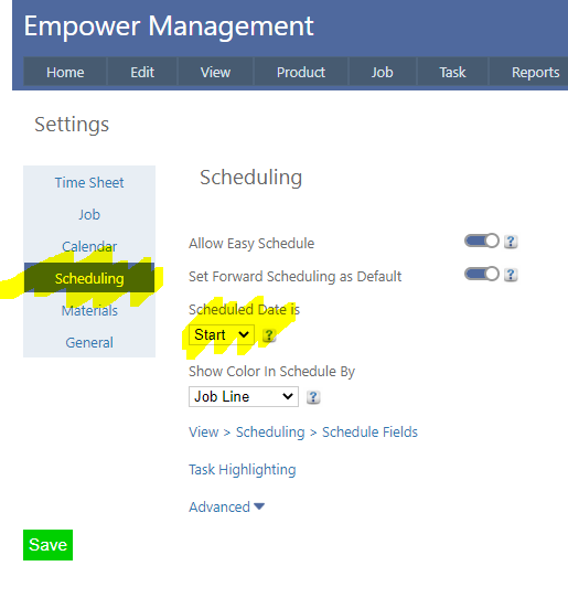 To do this, select Tools > Settings from the main menu and from the Scheduling tab select the Scheduled Date is field (see highlighted below)