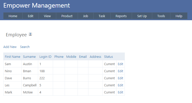 Select the appropriate Employee and click Edit.