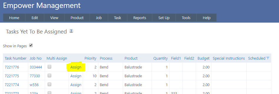 To Assign more than one Task at the same time click on the Multi Assign check box for each Task you want to Assign. Then click on the Multi Assign button.