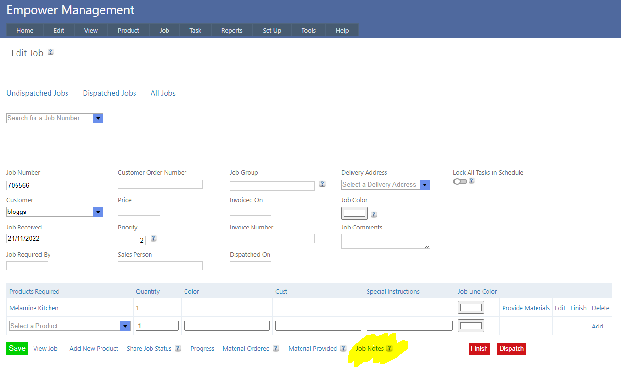 1. An unlimited number of notes can be added to a Job. These are able to be viewed in both the Management and Factory versions.