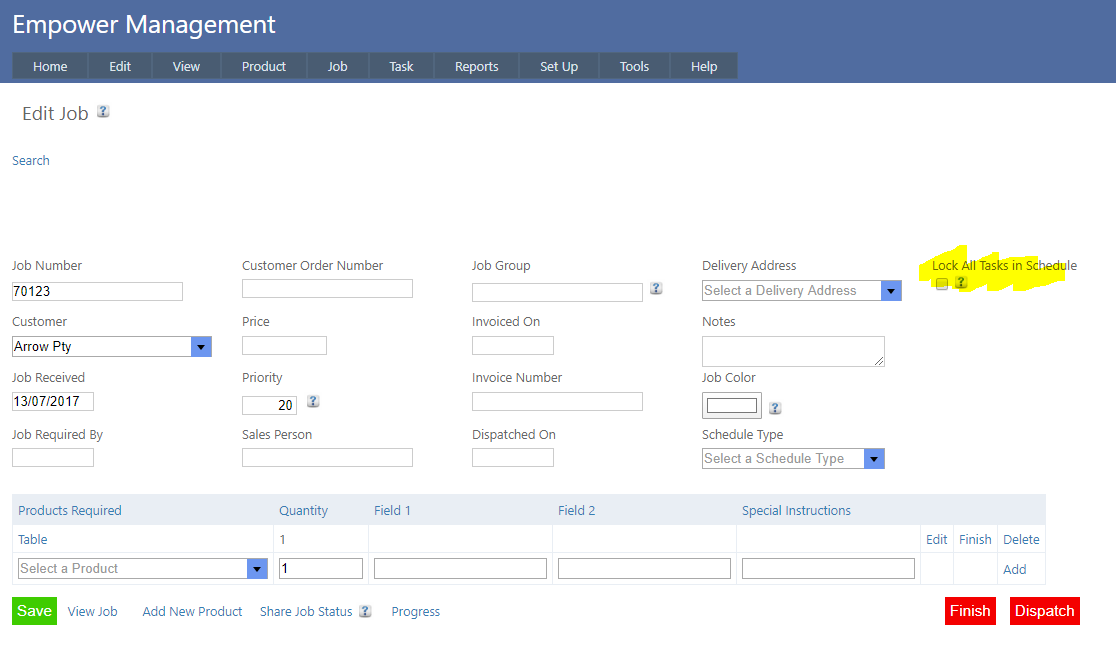 It is possible to lock a Job so that all Tasks in that Job that have Scheduled dates will not be changed when