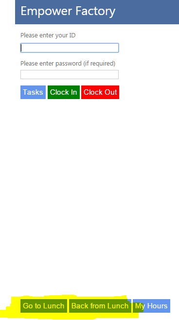 Now the Factory version will have Go To and Back From Lunch buttons - you may need to refresh the browser of the Factory version to see these buttons.