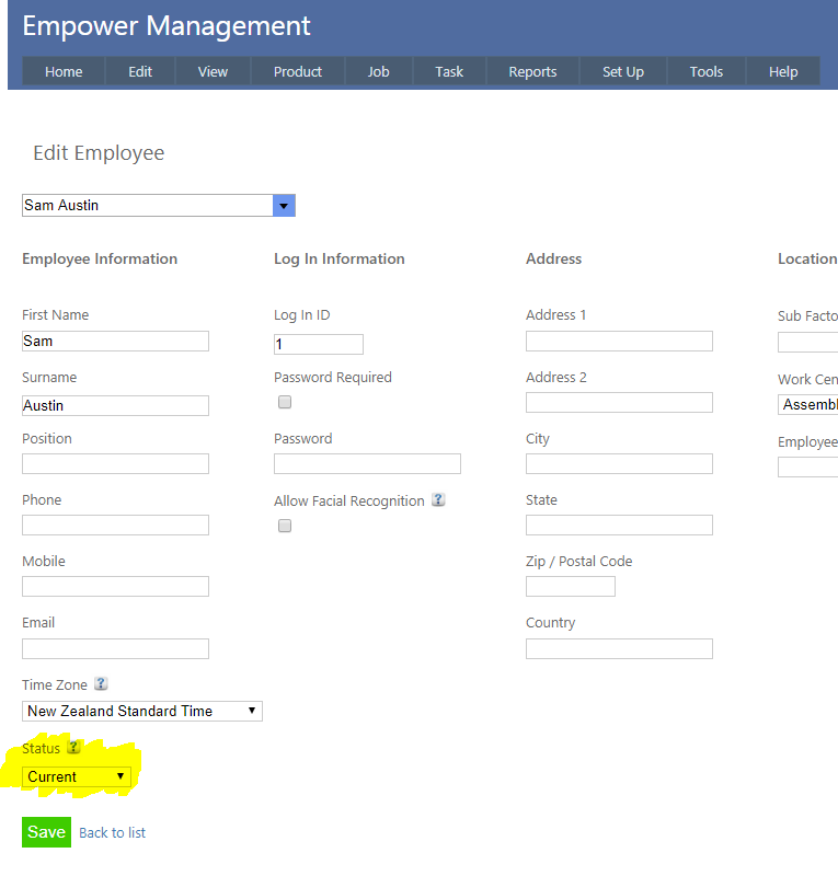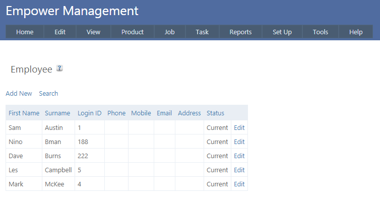 It is also possible to change to change a Non Current Employee to a Current Employee. To do this, from the Main Menu go to Set Up > Employee. You should see a page similar to
