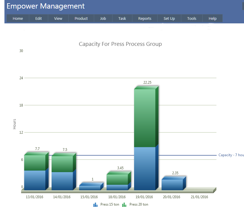 For example you could have a Process Group called Press that has several processes as part of that Process Group, eg Press 15 ton, Press 20 ton, etc.
